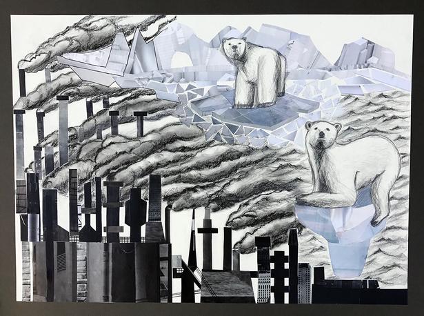 Graphite, Charcoal, Acrylic Paint and Color Paper on paper 18" (H) x 24" (W)